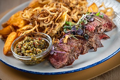 Perfekt gebratenes Steak, dazu Steakkartoffeln und g