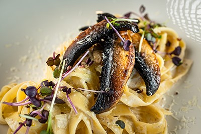 Frische Tagliatelle in einer cremigen Pilzsauce mit aromatischen Steinpilzen (Milch, Gluten)